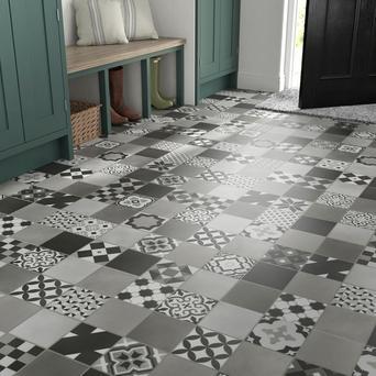Vinyl Flooring Sheet Kitchen Bathroom Lino Moroccan Grey Tile Effect Cushion Ebay